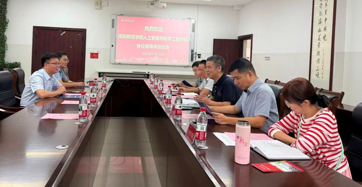 (通讯员:龙静)10月12日上午,南阳师范学院人工智能与软件工程学院院长惠明一行到访我院,双方围绕学科建设、人才培养、科研合作等关键议题,在中和楼233会议室展开了深入交流。我院教学负责人张连明、人工智能系主任王润民、软件工程系主任马华、科研办负责人于小海、组织人事秘书曹巧稚、人工智能系专任教师龙静共同出席会议,会议由张连明教授主持。