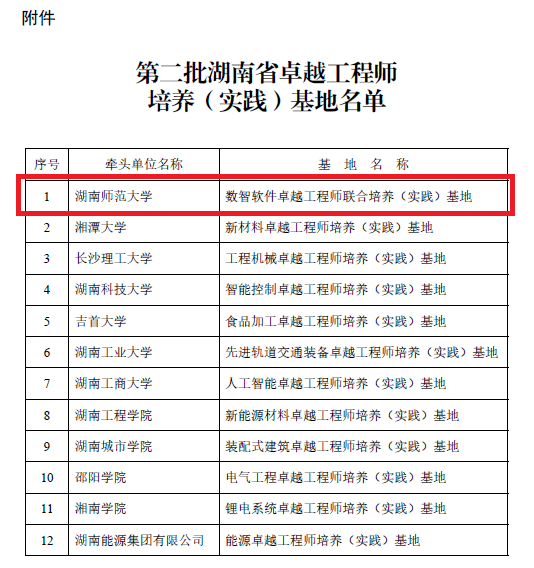 (通讯员 童钊)近日,湖南省教育厅、湖南省工业和信息化厅联合公布第二批湖南省卓越工程师培养(实践)基地名单,由湖南师范大学信息科学与工程学院牵头,联合三一集团有限公司、银河麒麟软件(长沙)有限公司、长沙景嘉微电子股份有限公司共同申报的“湖南师范大学数智软件卓越工程师联合培养(实践)基地”成功获批,标志着学院在数智软件领域卓越工程人才培养与产教融合领域迈出关键一步。