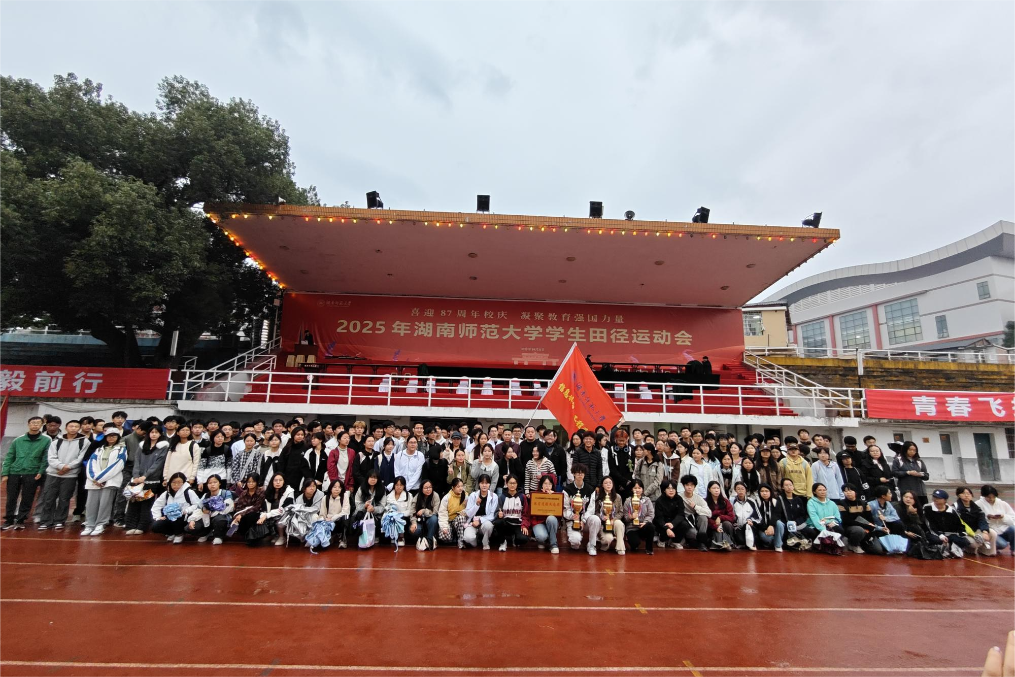 (通讯员 方诗语 齐梦茹)为提升学生身体素质,丰富校园文化生活,10月31日至11月1日,湖南师范大学于北院田径场举办了2025年中国田径大众达标校园系列赛暨湖南师范大学学生田径运动会。我院运动员及运动员替补共79人参加,获得男女团体总分第一名、男子团体总分第一名、女子团体总分第二名的优异成绩,同时获评体育道德风尚奖。