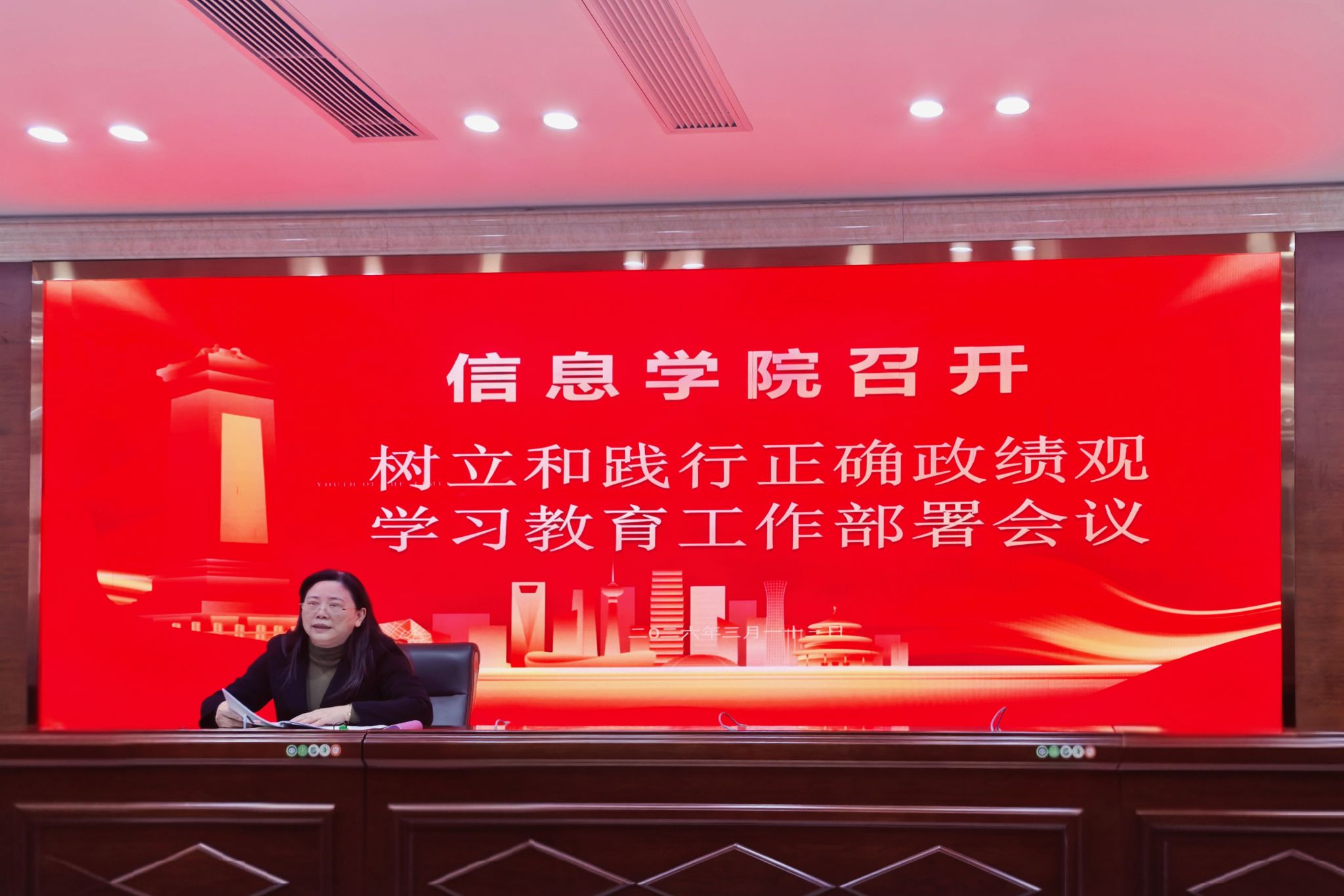 会议伊始,李常枫传达学校党委要求,阐释学习教育重要意义,强调学院需立足“为党育人,为国育人”核心,明确政绩观核心问题。她强调,全体教职工需树立“看清政绩、不慕虚荣”的务实导向,聚焦人才培养实效与服务国家战略的科研成果,摒弃形式化的政绩追求。