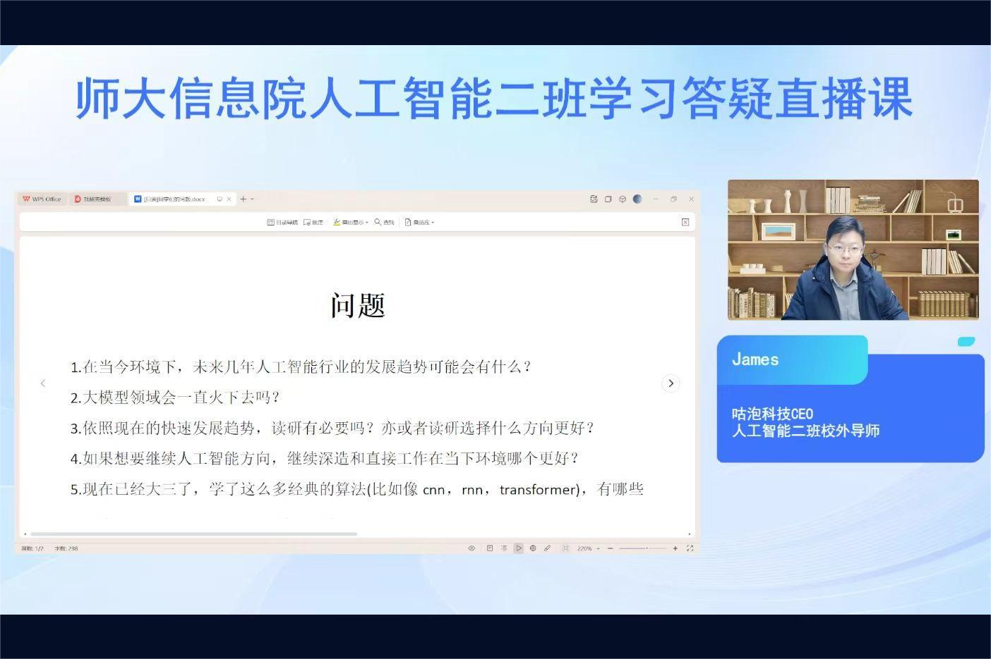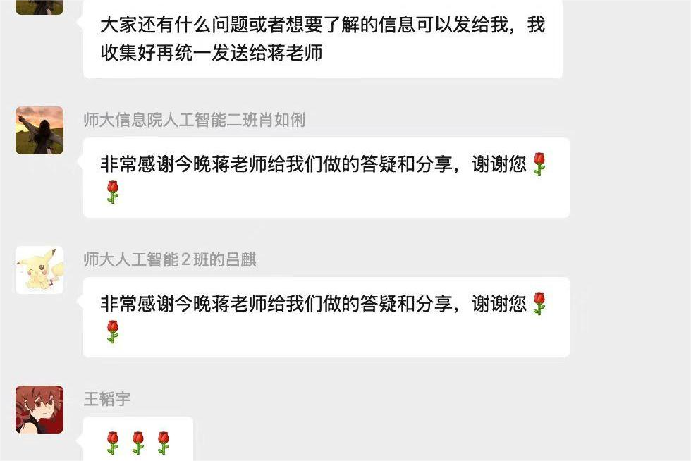 整场活动内容充实,论述精辟透彻,获得了学生的积极反馈。参与学生普遍表示,通过此次线上答疑,对人工智能行业的发展现状和未来趋势有了更清晰的认知,也为个人发展方向的选择提供了重要参考。
