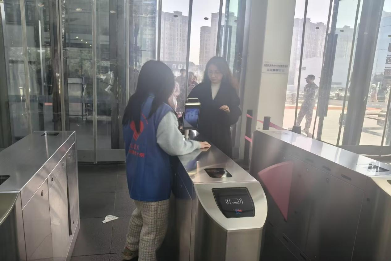 志愿者引导游客扫描场所码