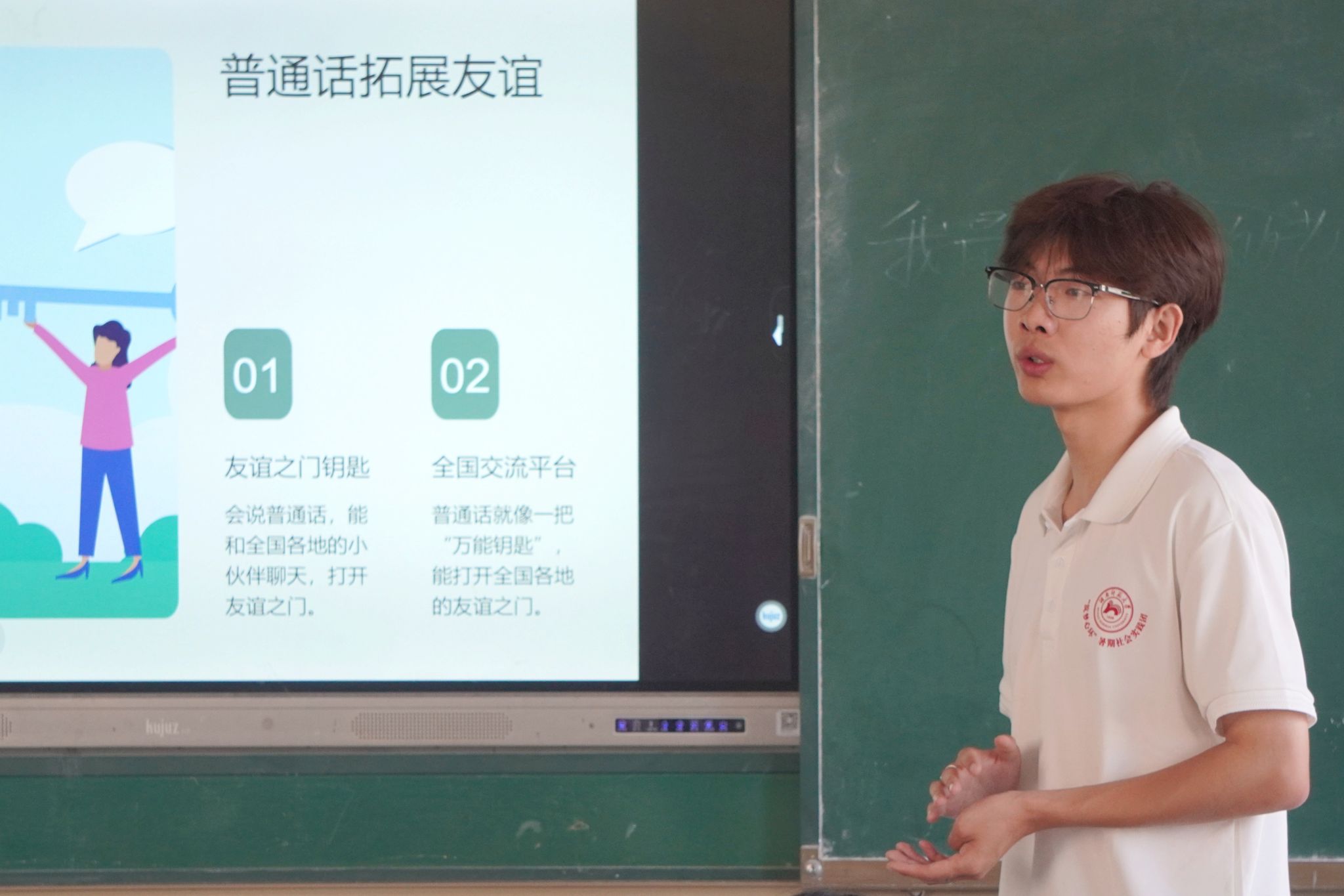 教学过程中,实践团采用了故事导入和经典诵读两种教学形式。课堂上,学生集中练习了"八百标兵奔北坡"等绕口令。为强化教学效果,团队设计了"方言转普通话"互动游戏,通过实践帮助学生掌握普通话发音特点。为评估教学效果,活动设置了普通话能力测试环节,测试结果将作为学生普通话水平的客观评估依据。